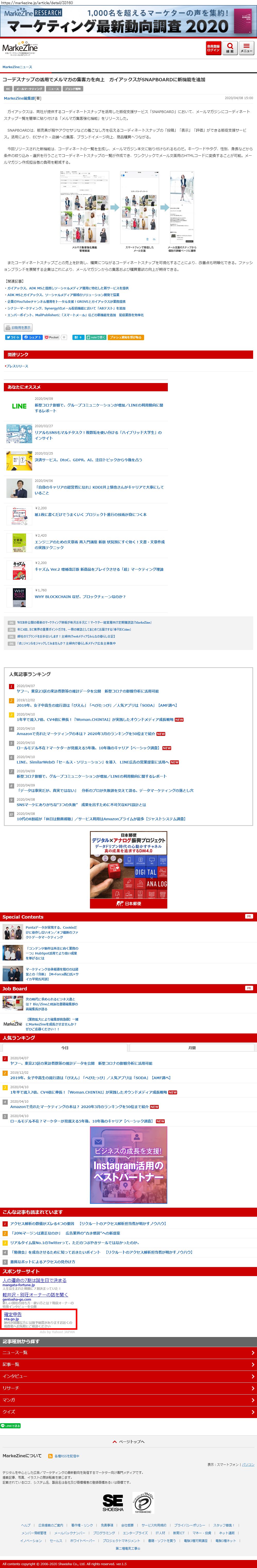 Webメディア 広告枠に赤枠付き