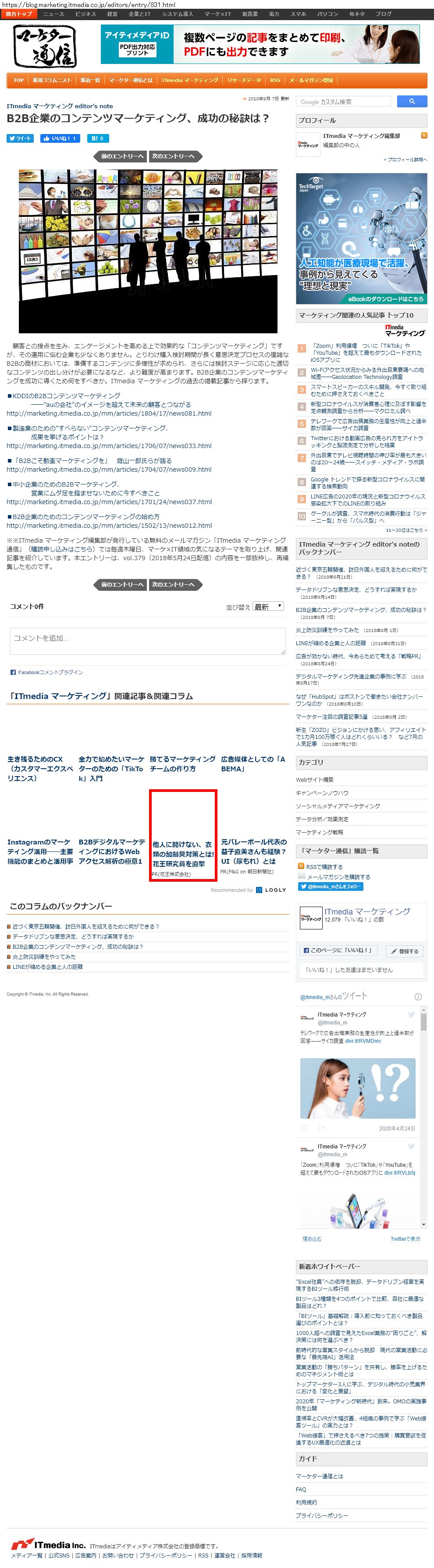 Webメディア 広告枠に赤枠付き
