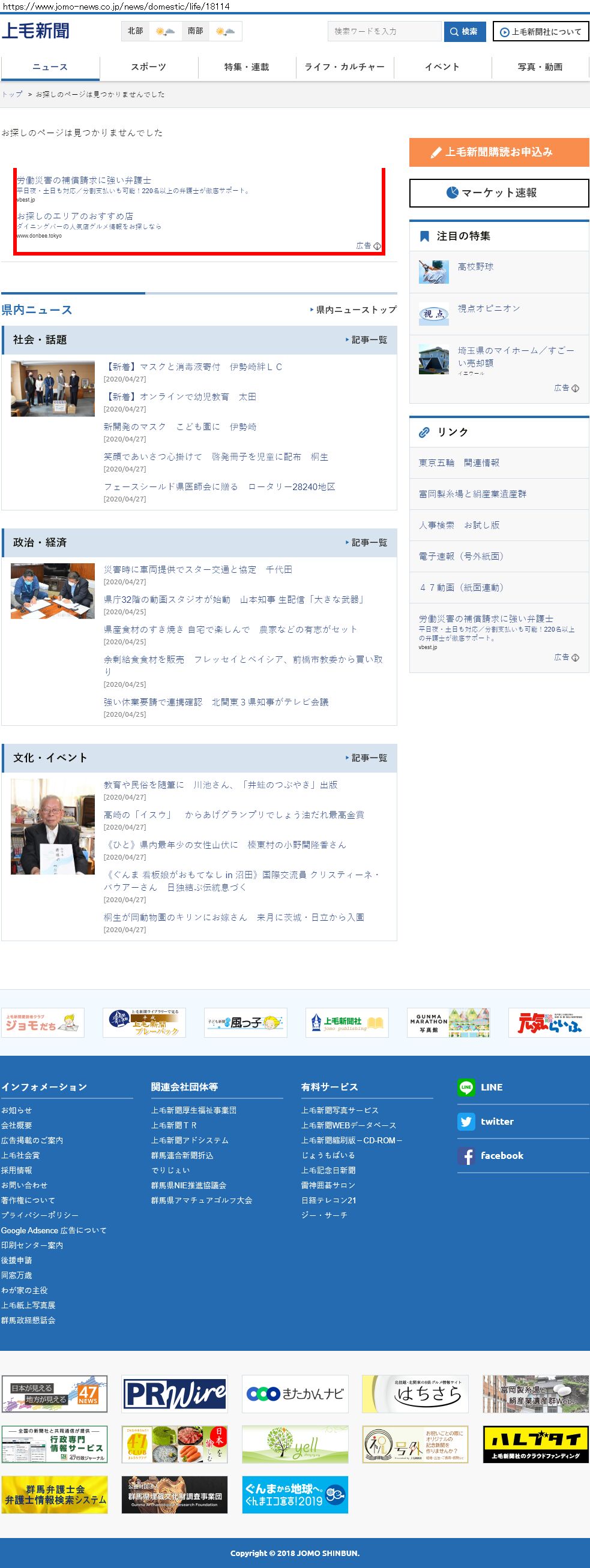 Webメディア 広告枠に赤枠付き