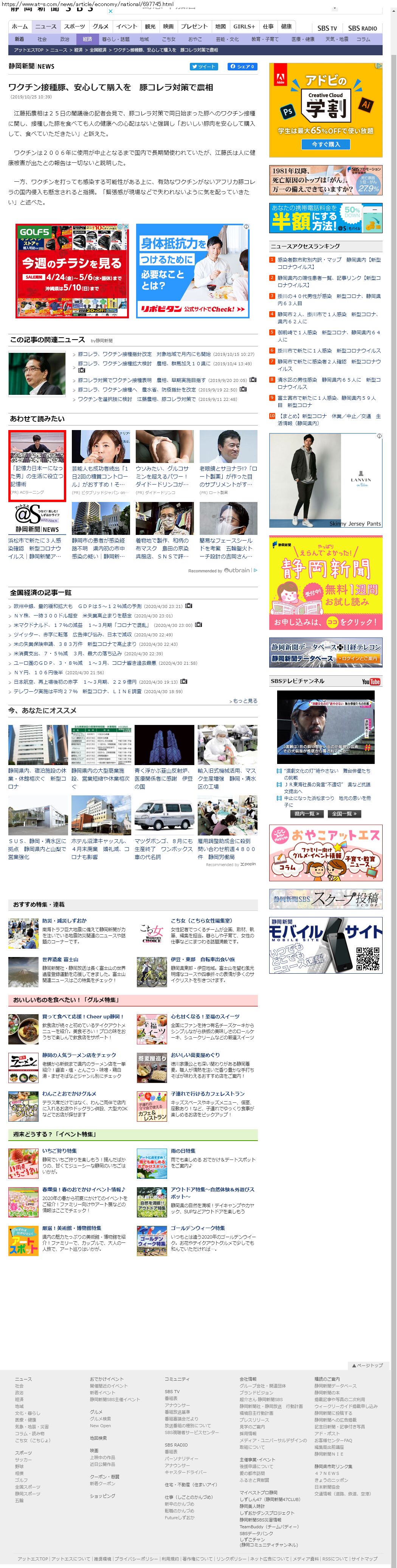 Webメディア 広告枠に赤枠付き