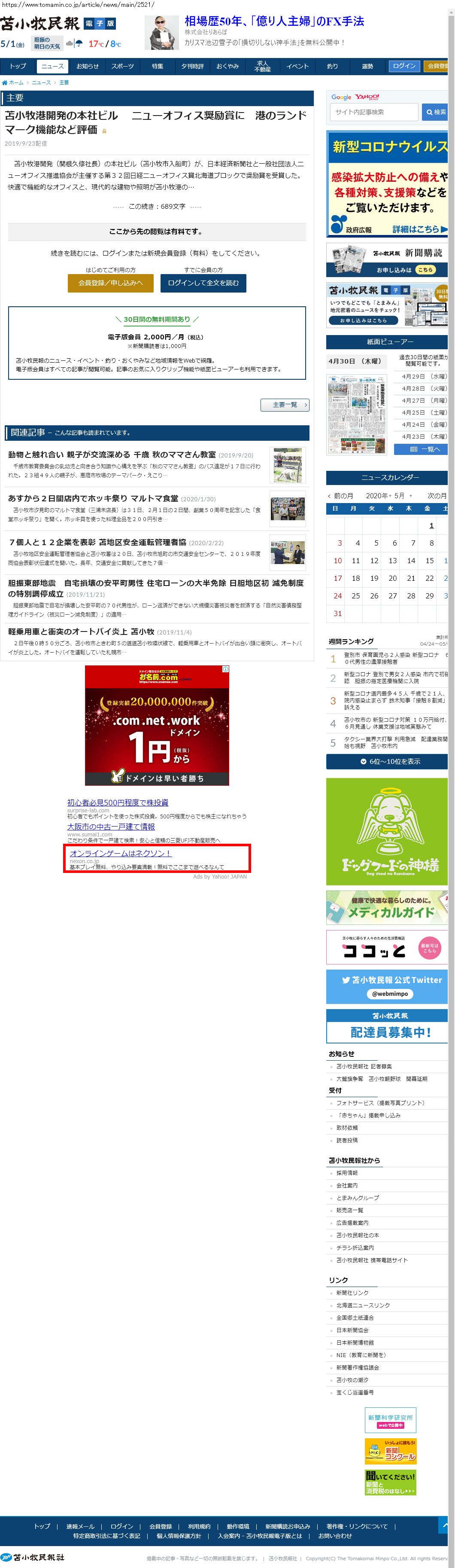 Webメディア 広告枠に赤枠付き