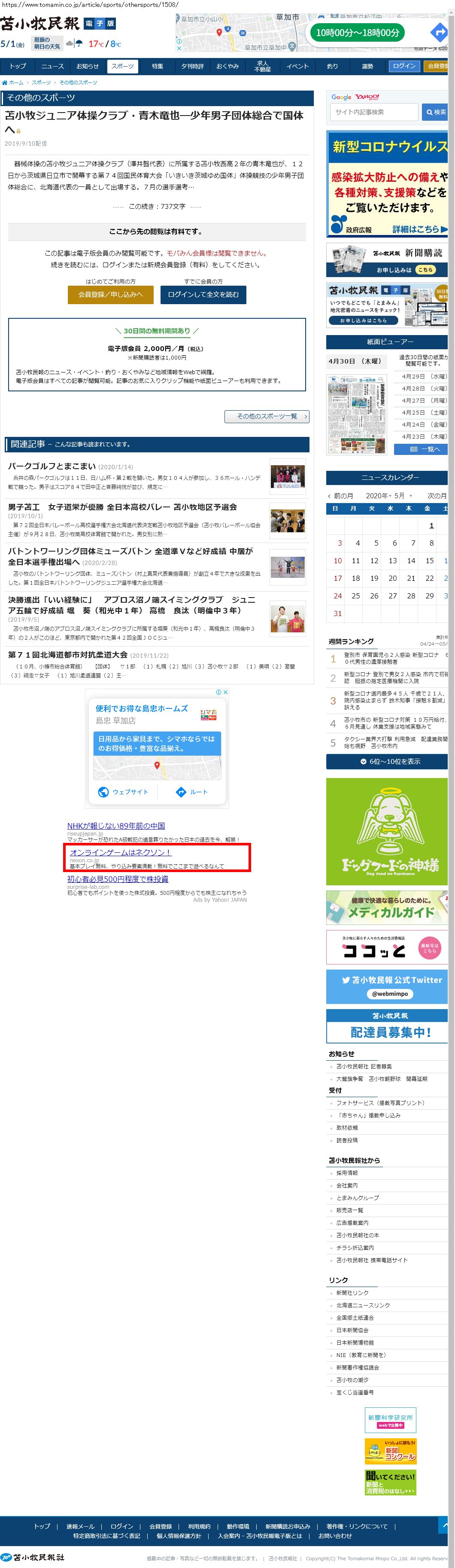 Webメディア 広告枠に赤枠付き