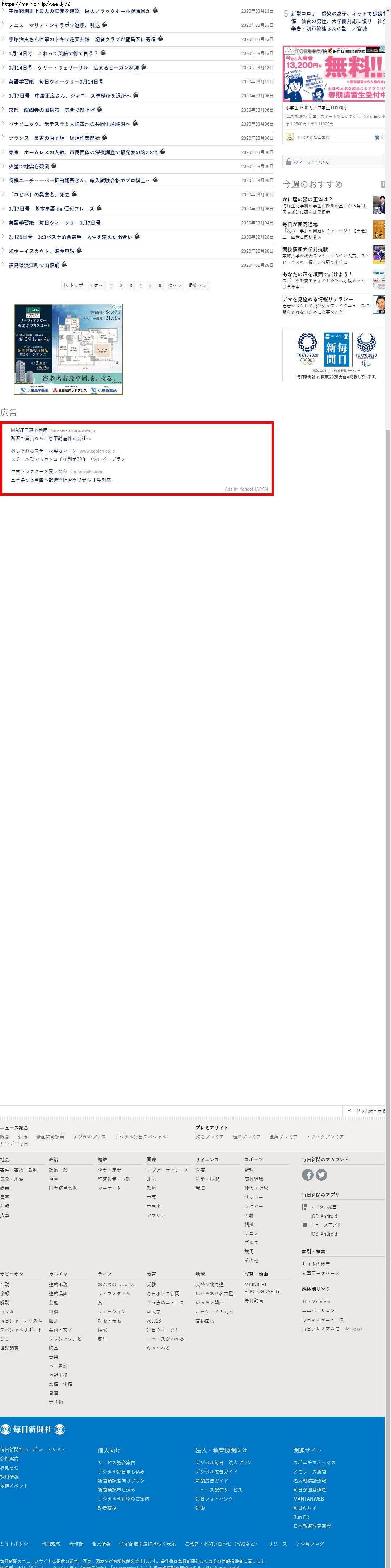 Webメディア 広告枠に赤枠付き