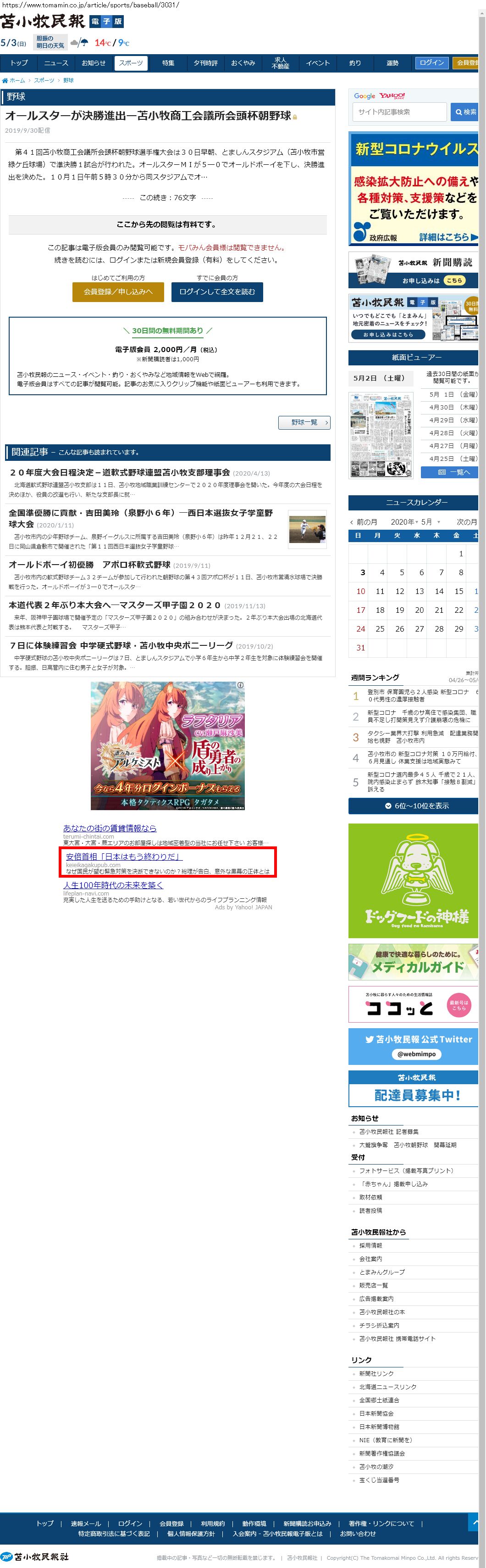 Webメディア 広告枠に赤枠付き