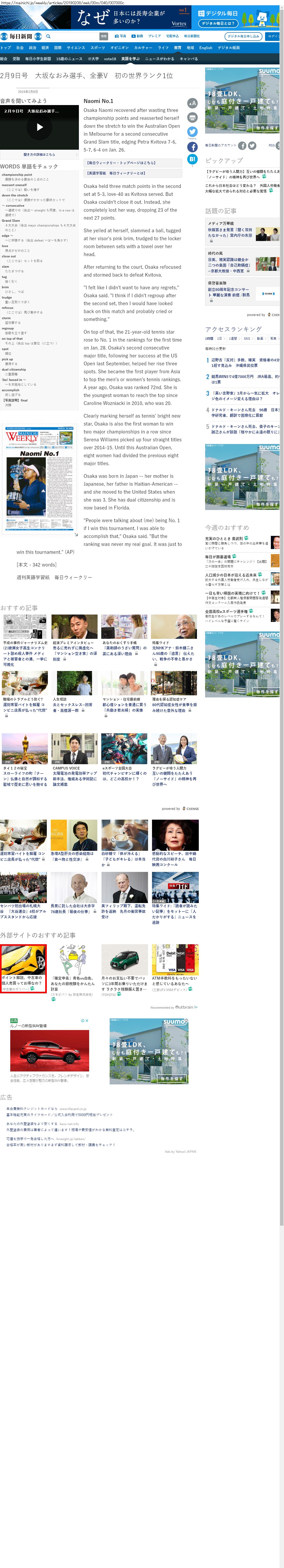 Webメディア 広告枠に赤枠付き