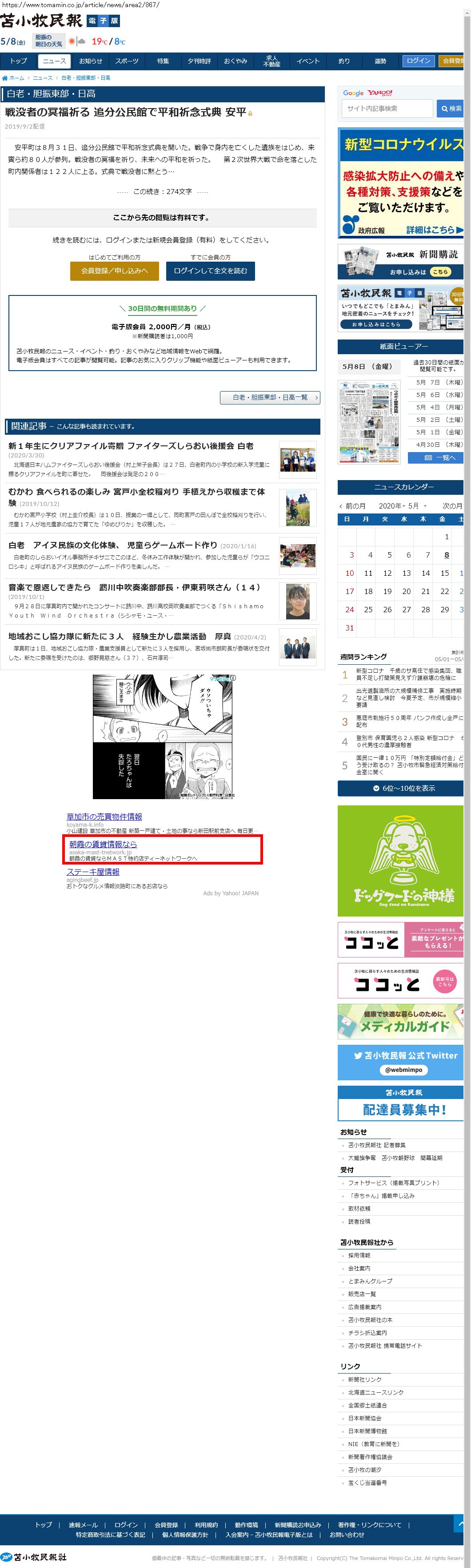 Webメディア 広告枠に赤枠付き