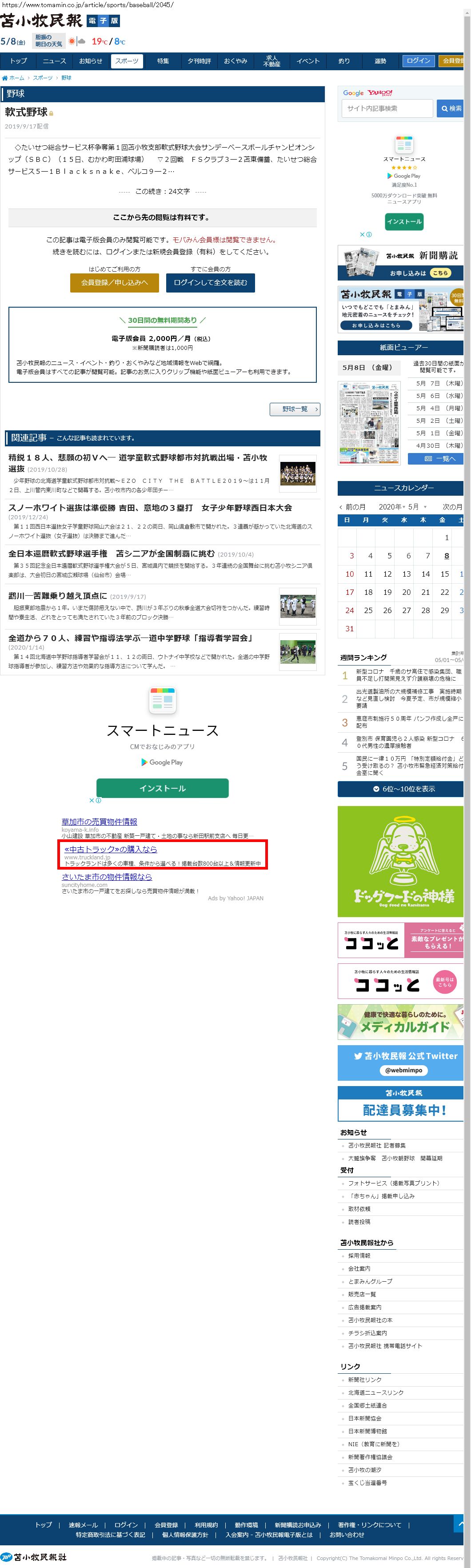 Webメディア 広告枠に赤枠付き
