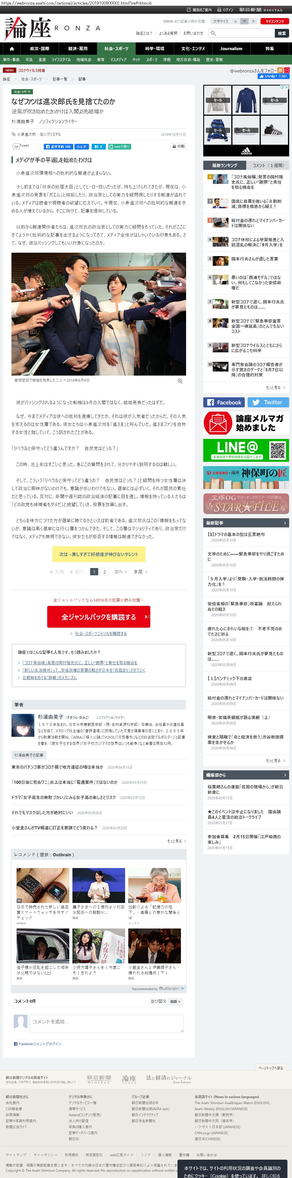 outbrain かつ webronza.asahi.com でガチャ