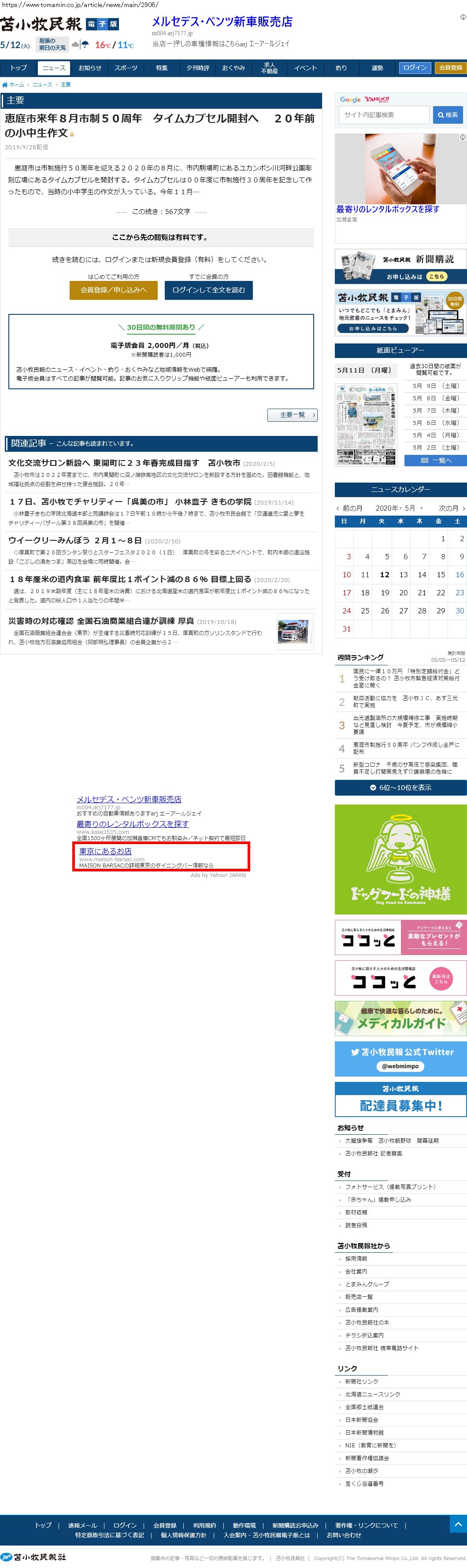 Webメディア 広告枠に赤枠付き