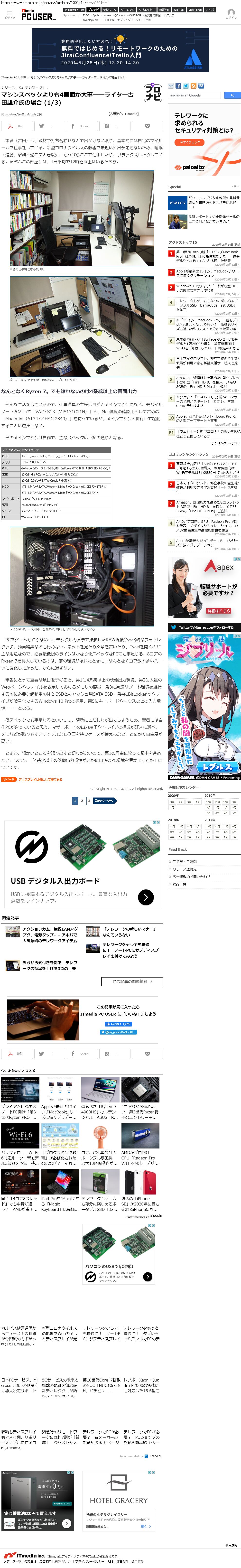 Webメディア 広告枠に赤枠付き