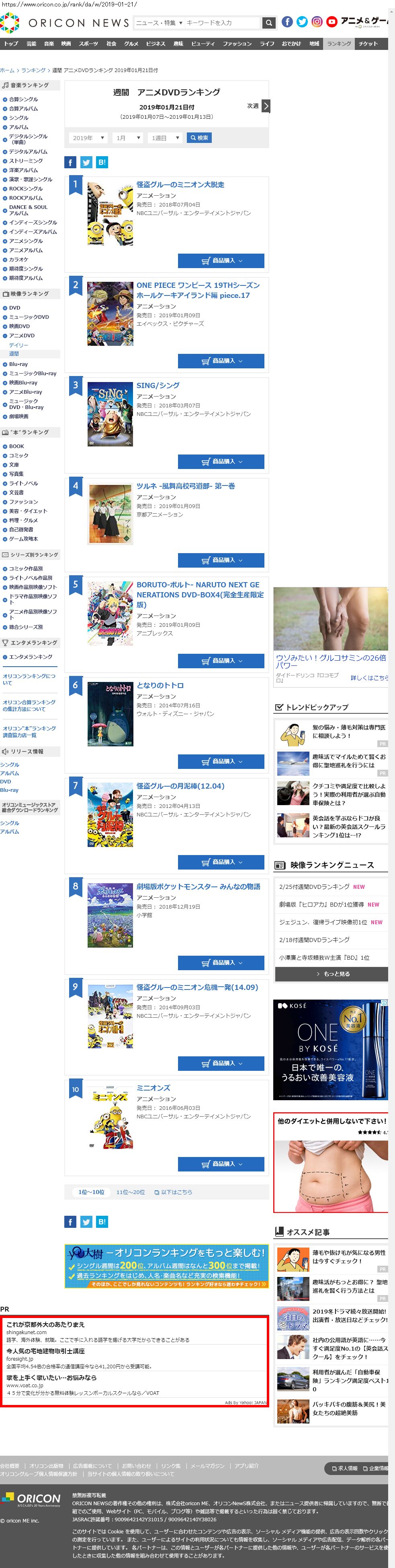 yahoo 経由の広告一覧