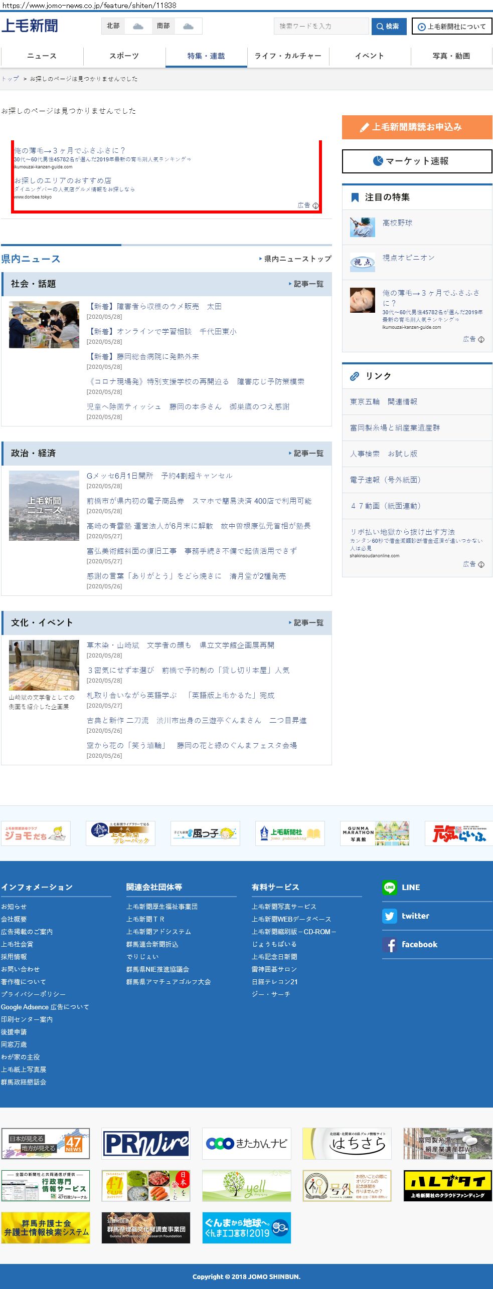 Webメディア 広告枠に赤枠付き