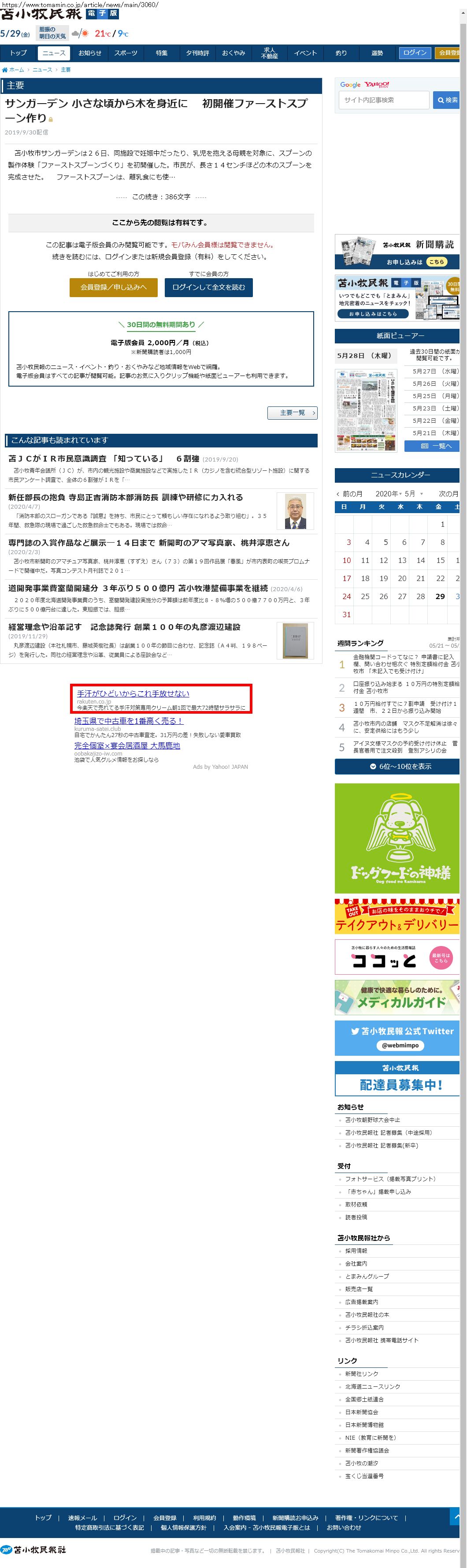 Webメディア 広告枠に赤枠付き