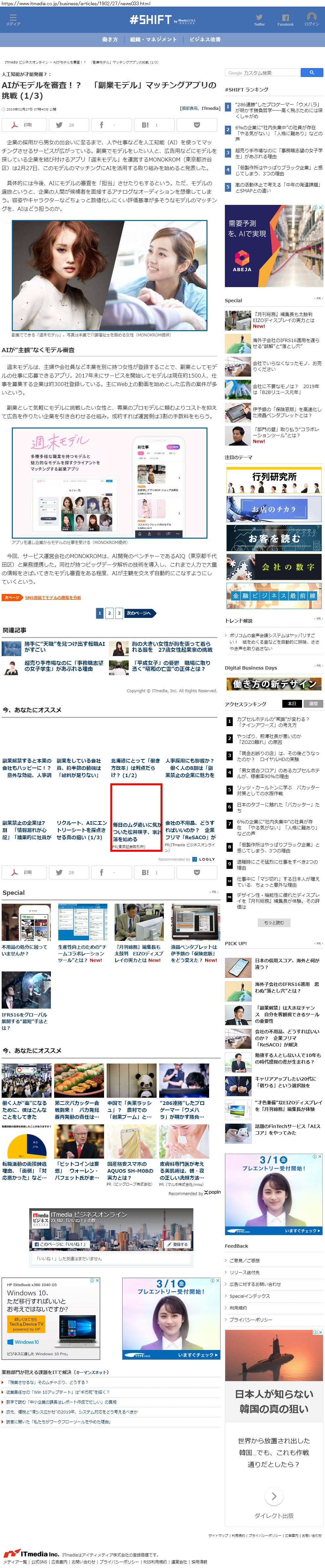 Webメディア 広告枠に赤枠付き