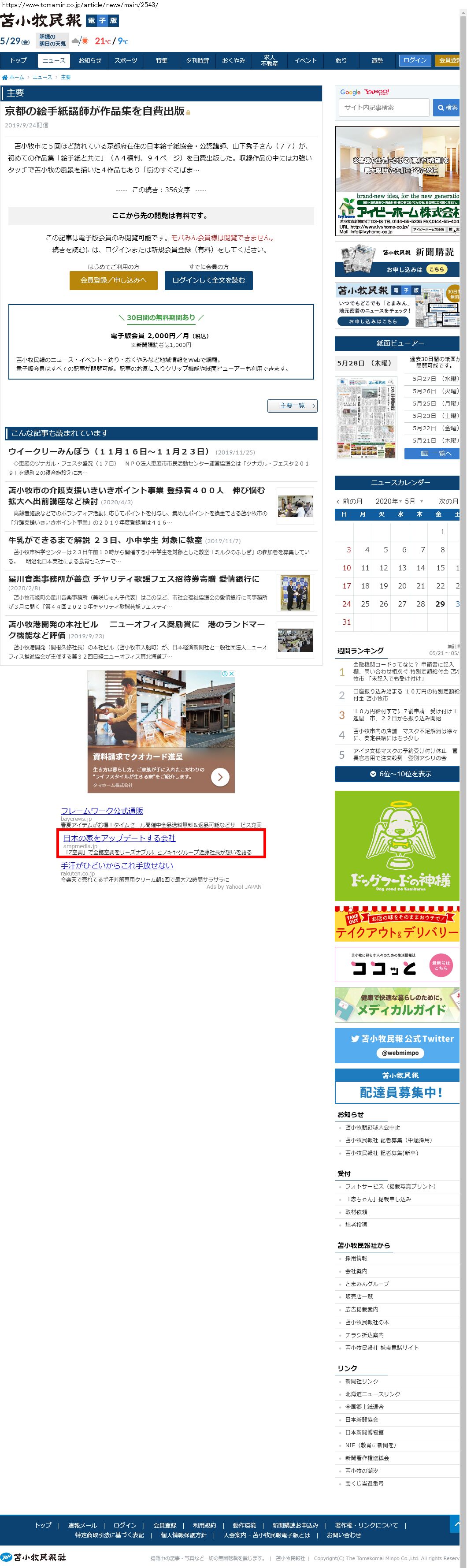 Webメディア 広告枠に赤枠付き