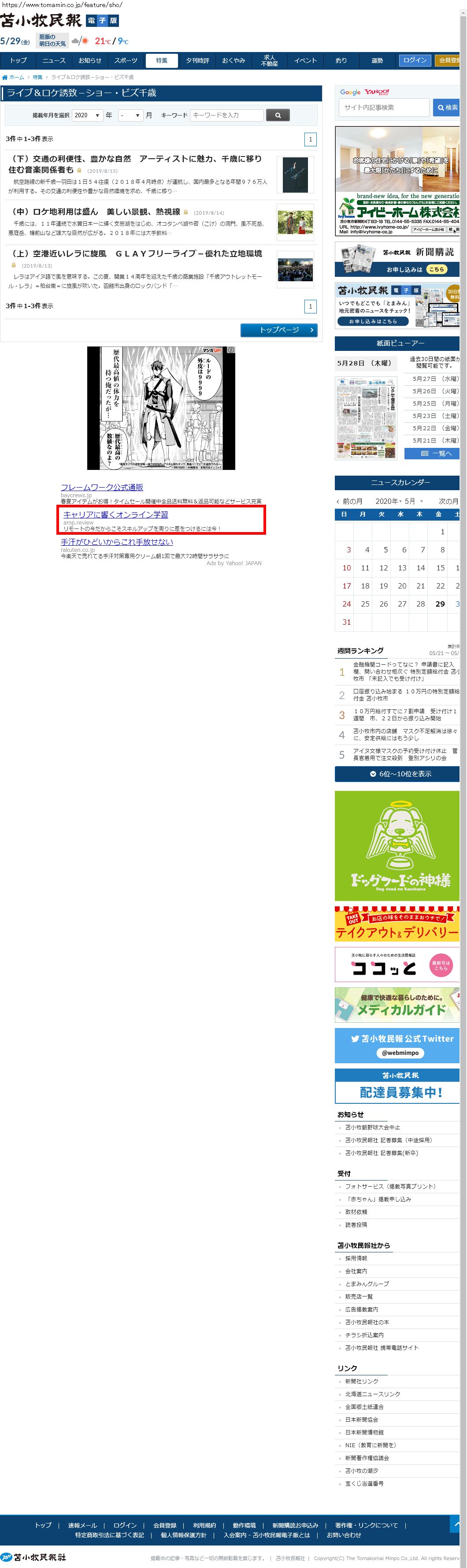 Webメディア 広告枠に赤枠付き
