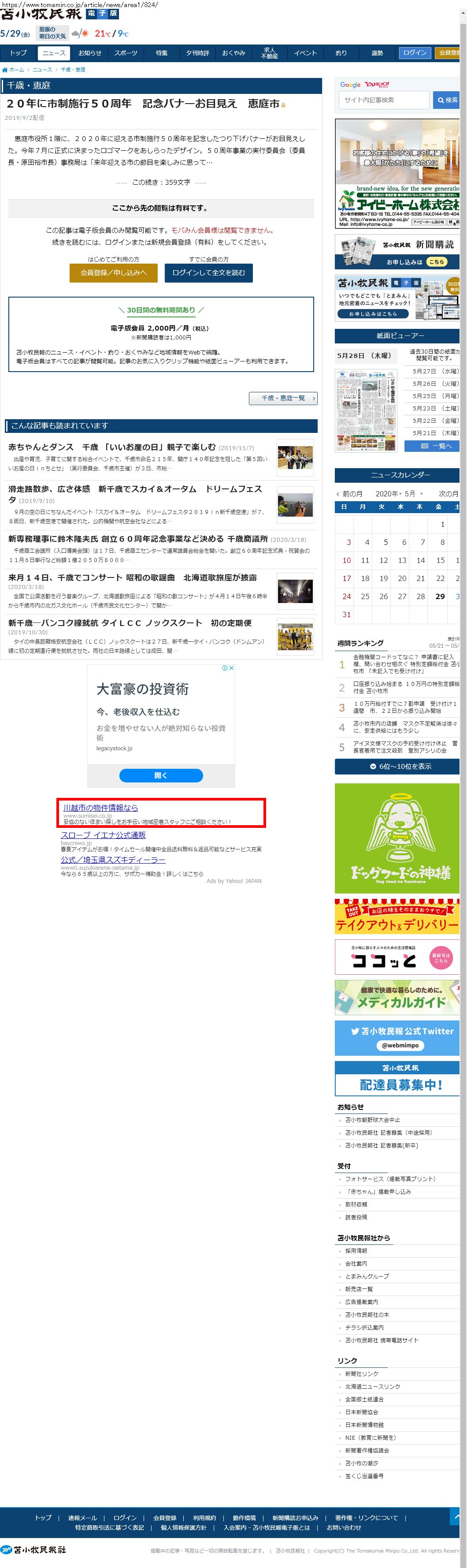 Webメディア 広告枠に赤枠付き