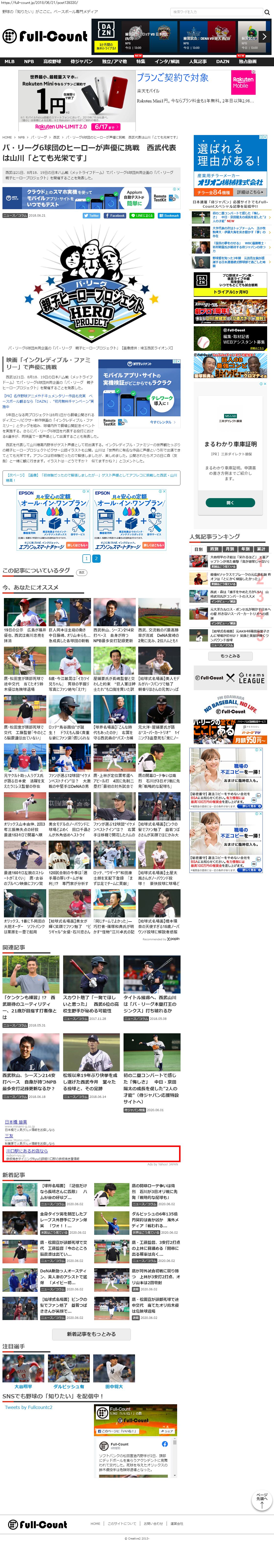 Webメディア 広告枠に赤枠付き