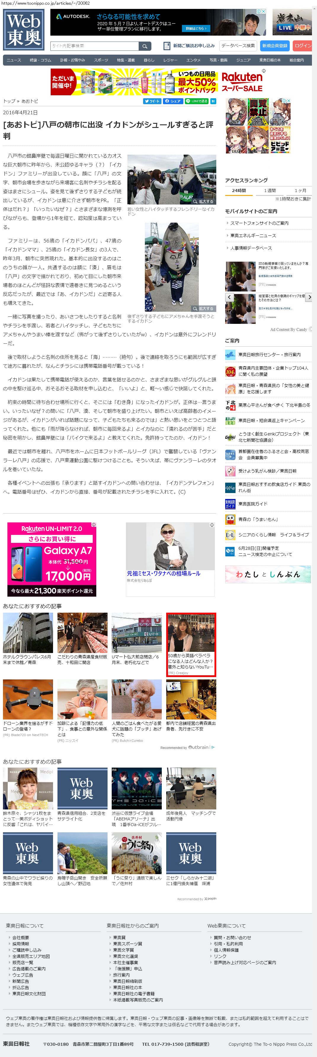 Webメディア 広告枠に赤枠付き