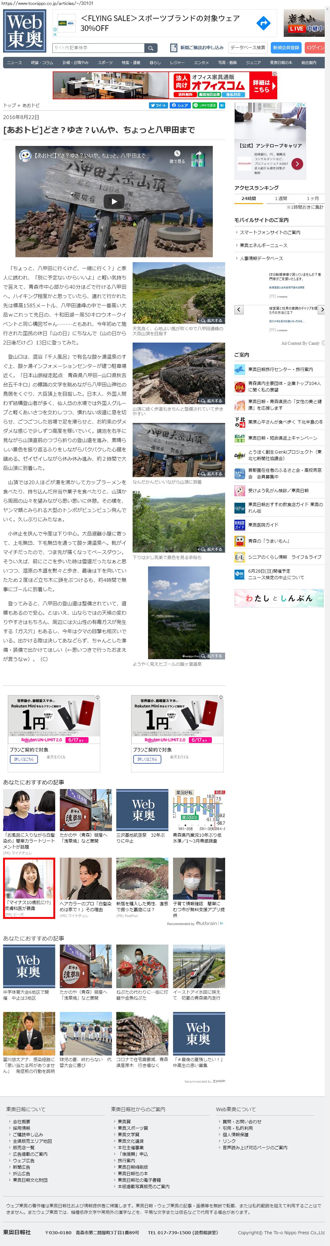 Webメディア 広告枠に赤枠付き