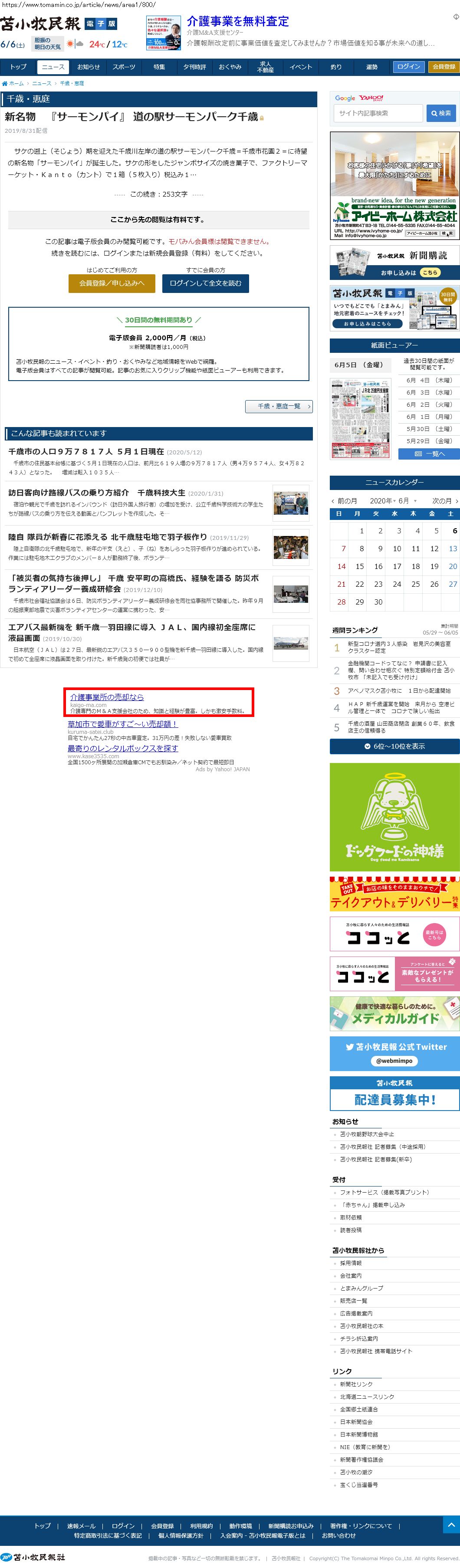 Webメディア 広告枠に赤枠付き