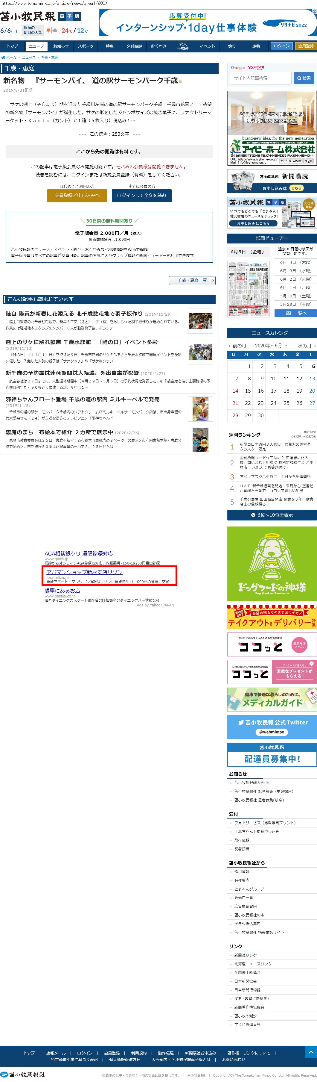 Webメディア 広告枠に赤枠付き