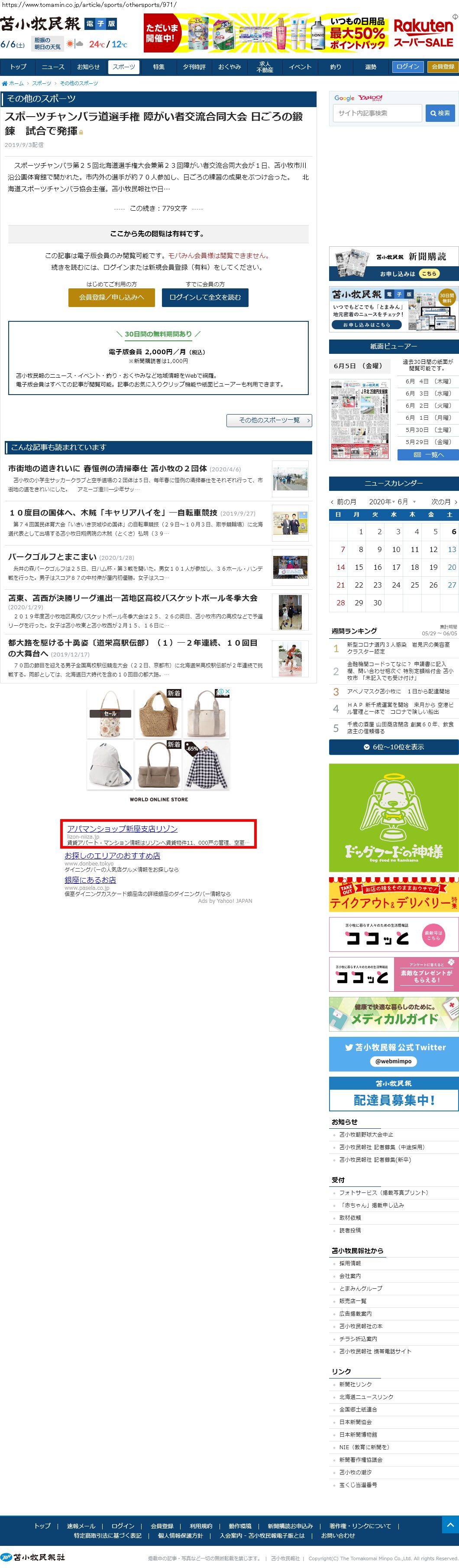 Webメディア 広告枠に赤枠付き
