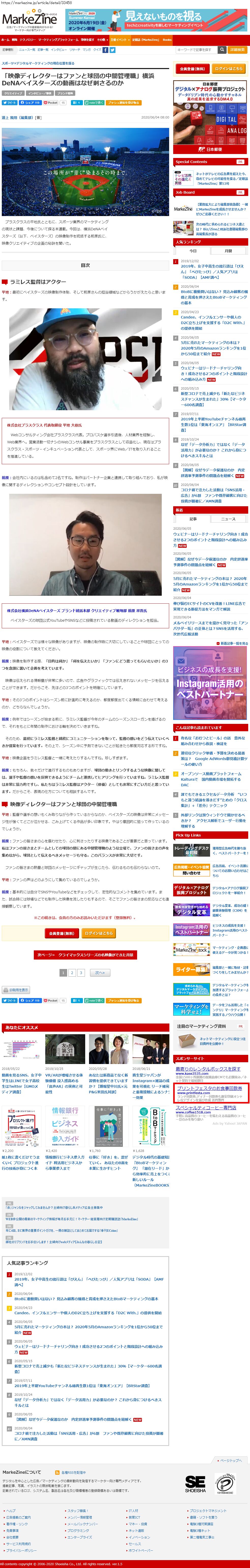 Webメディア 広告枠に赤枠付き