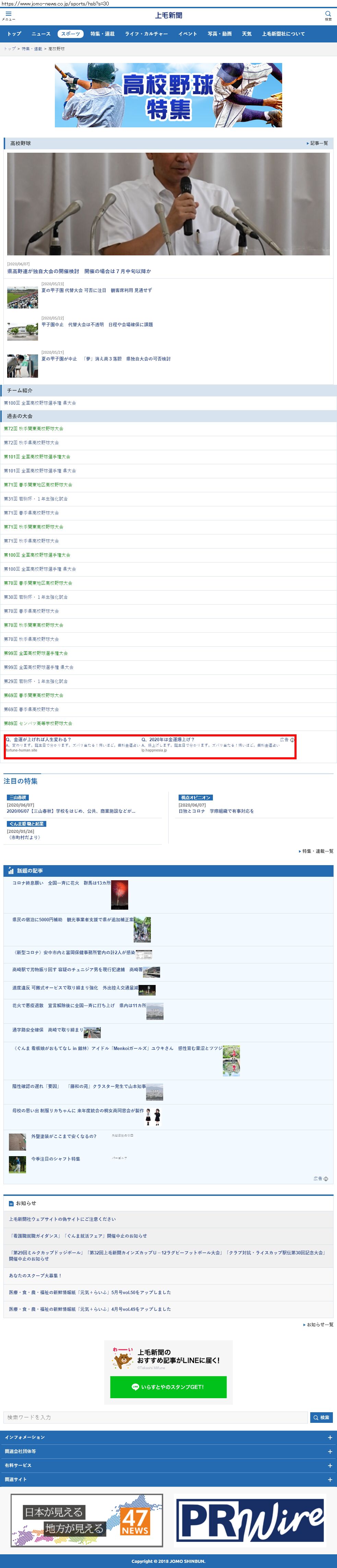 Webメディア 広告枠に赤枠付き