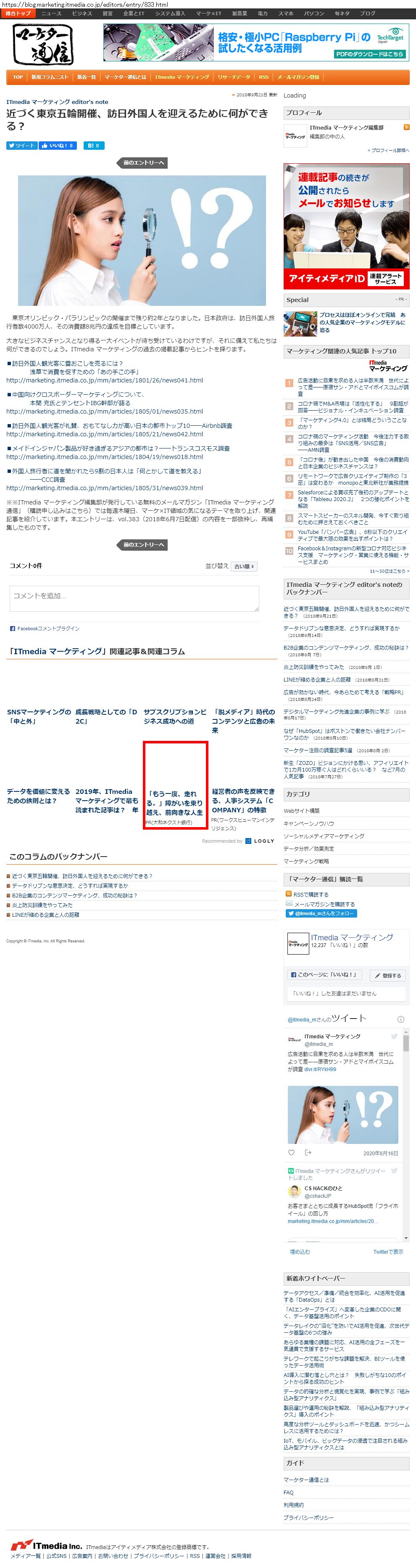 Webメディア 広告枠に赤枠付き