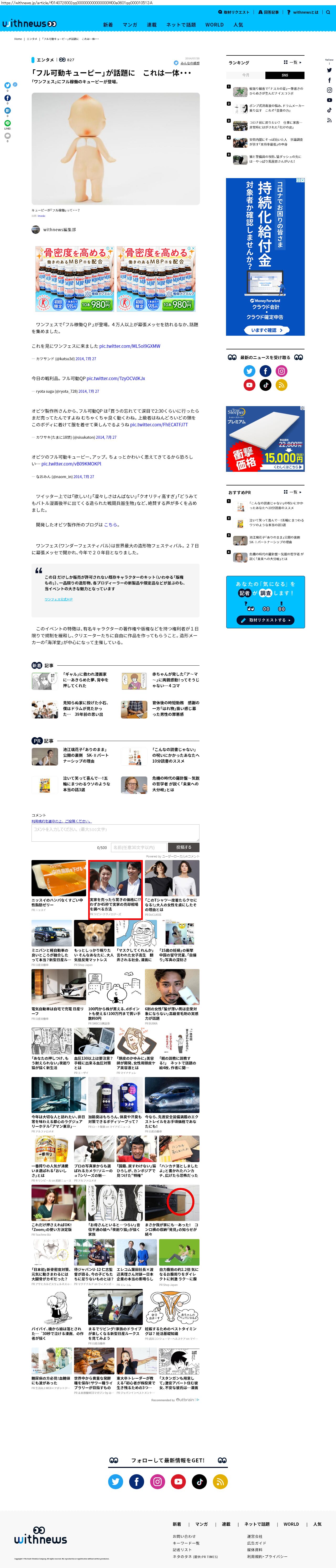 Webメディア 広告枠に赤枠付き