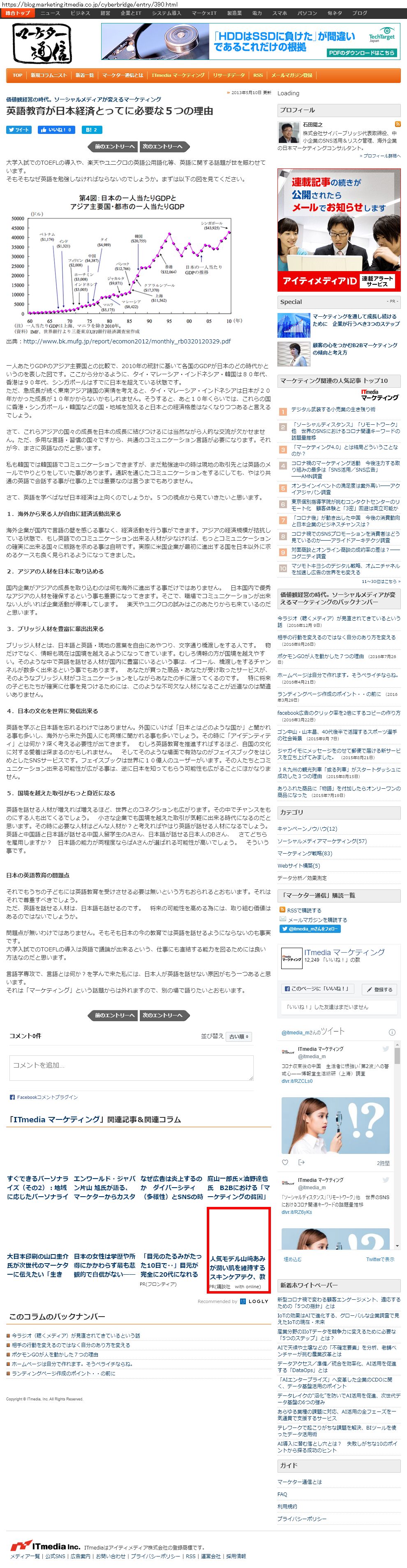Webメディア 広告枠に赤枠付き