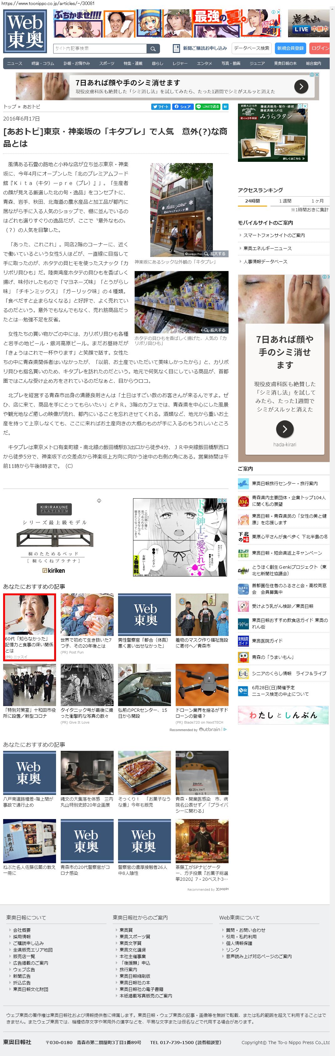 Webメディア 広告枠に赤枠付き