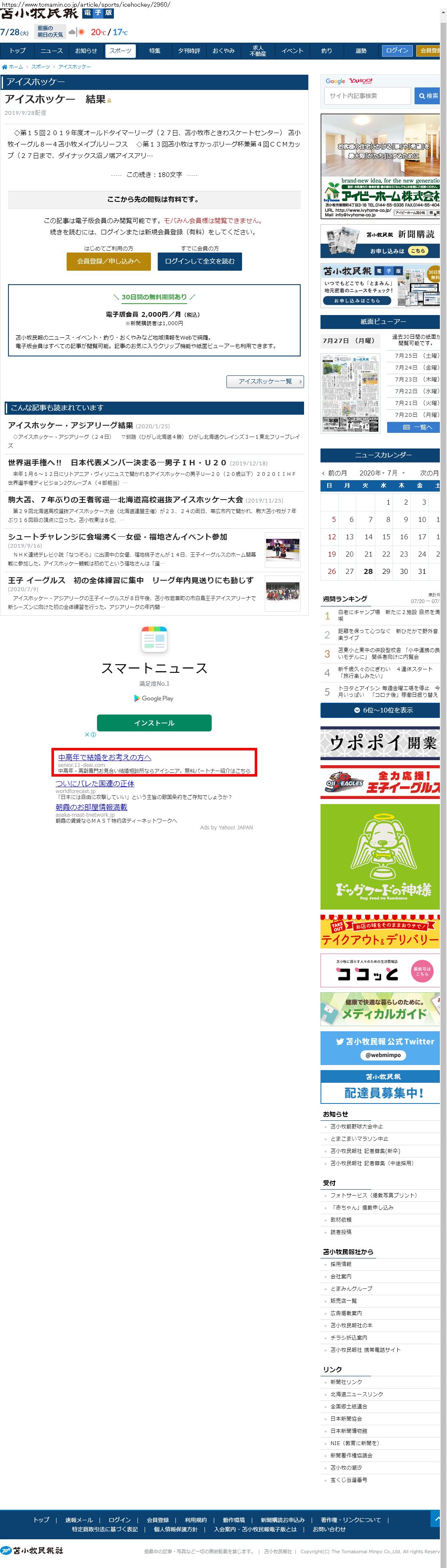 Webメディア 広告枠に赤枠付き