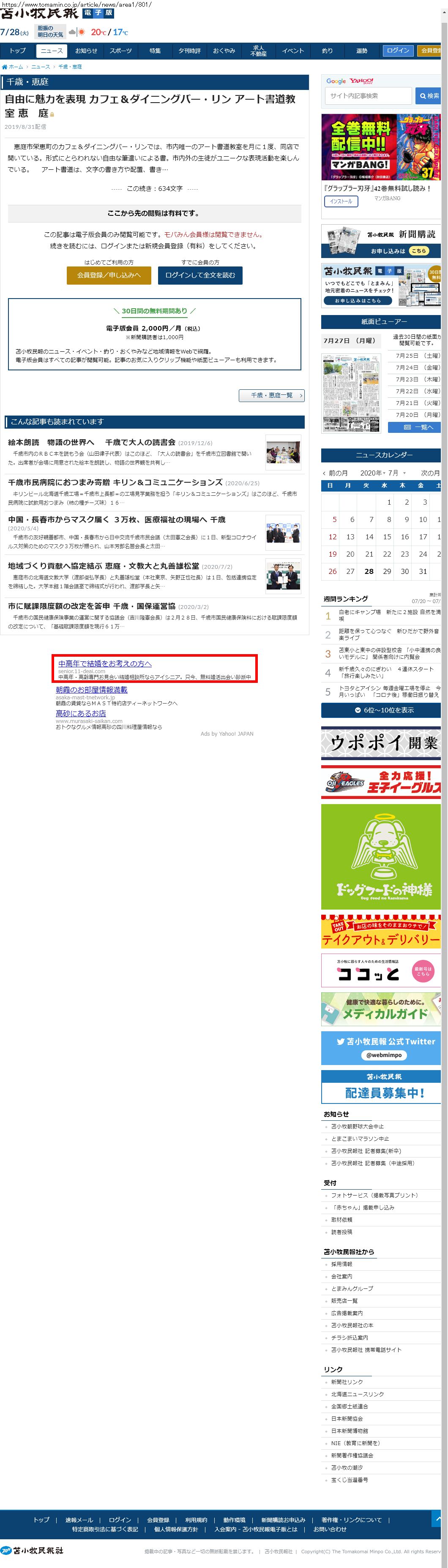 Webメディア 広告枠に赤枠付き