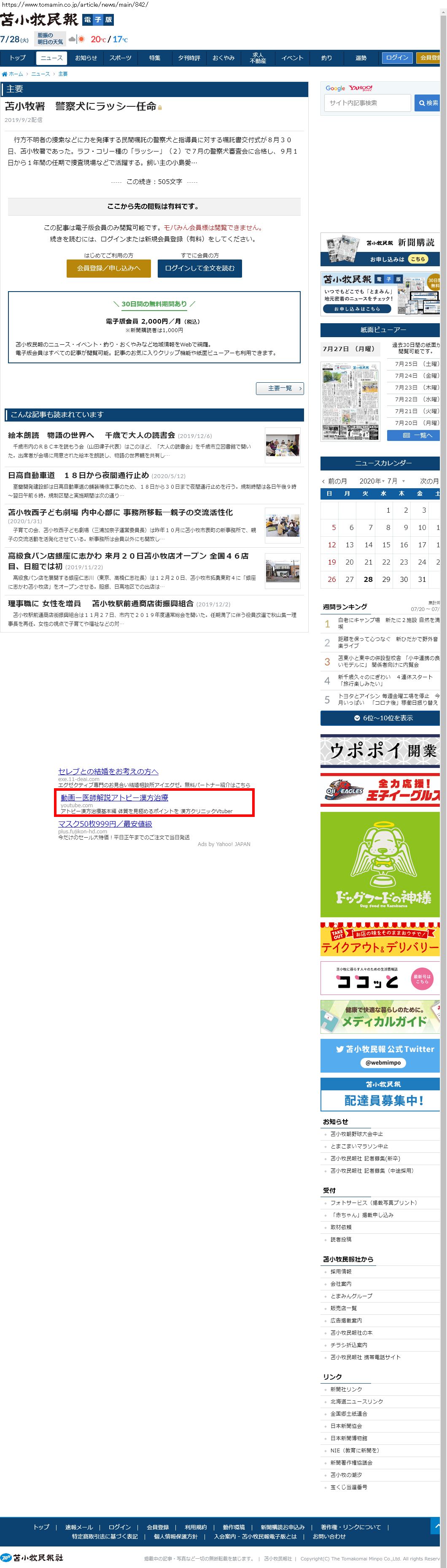 Webメディア 広告枠に赤枠付き