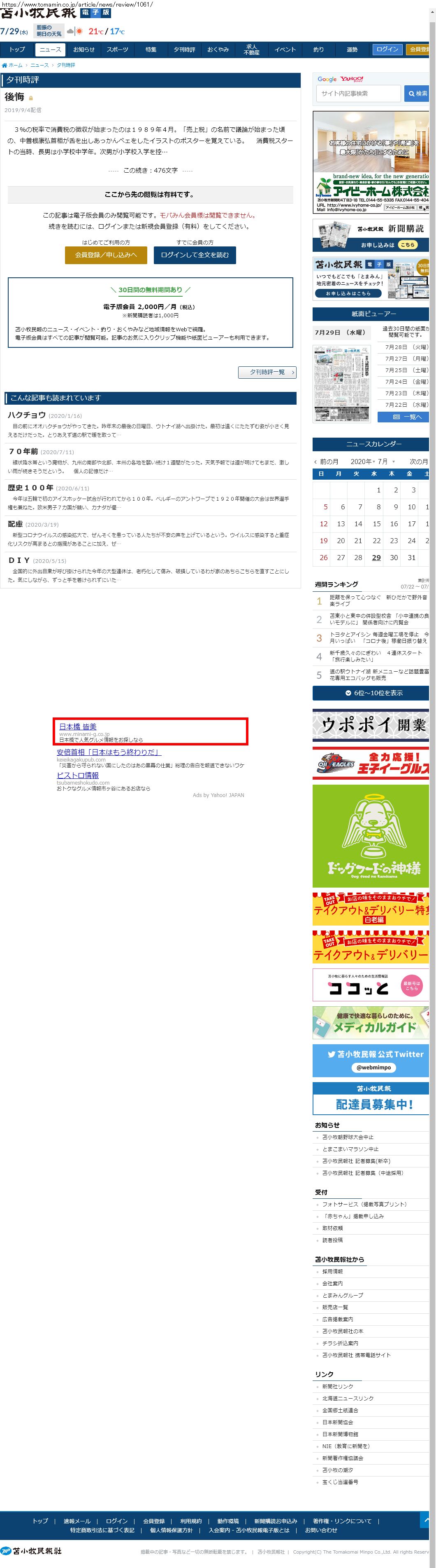 Webメディア 広告枠に赤枠付き