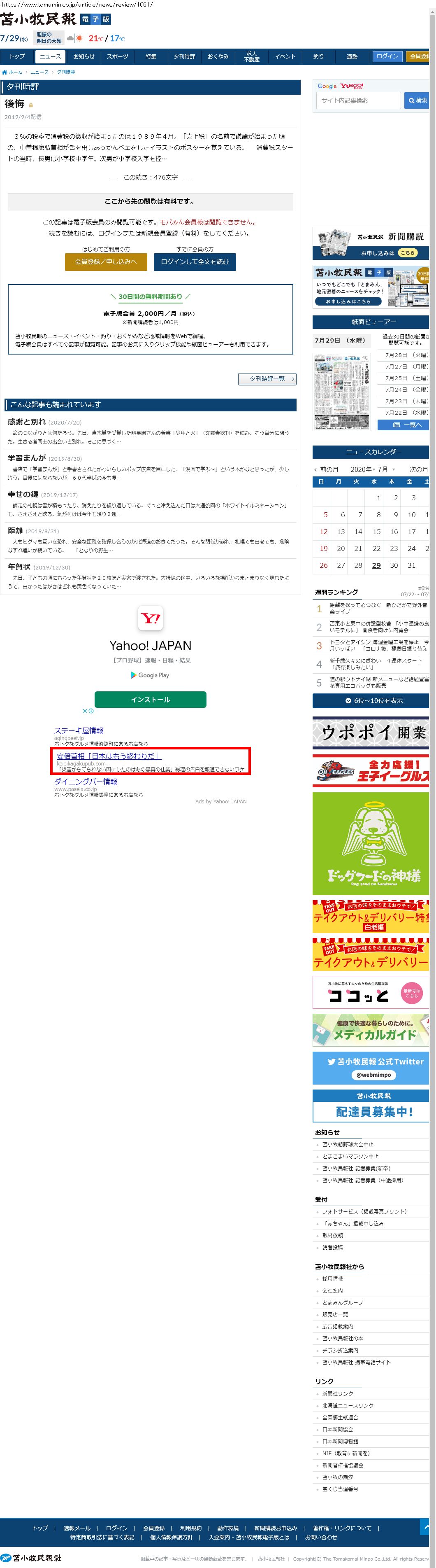 Webメディア 広告枠に赤枠付き