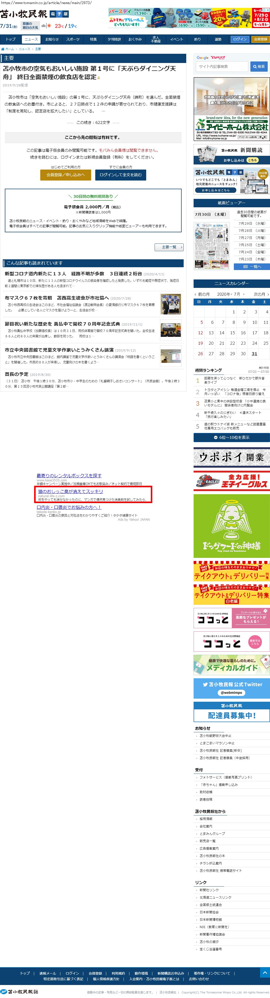 Webメディア 広告枠に赤枠付き