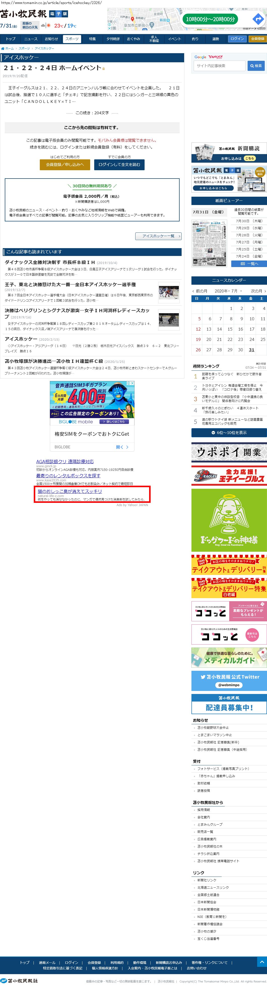 Webメディア 広告枠に赤枠付き