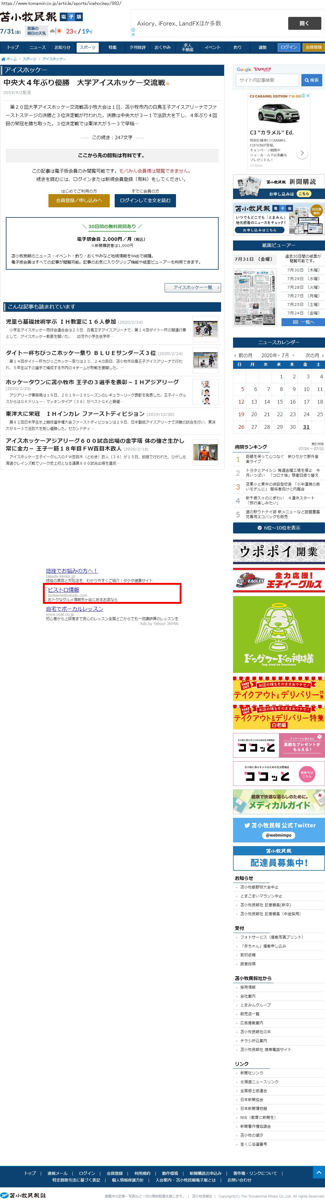 Webメディア 広告枠に赤枠付き