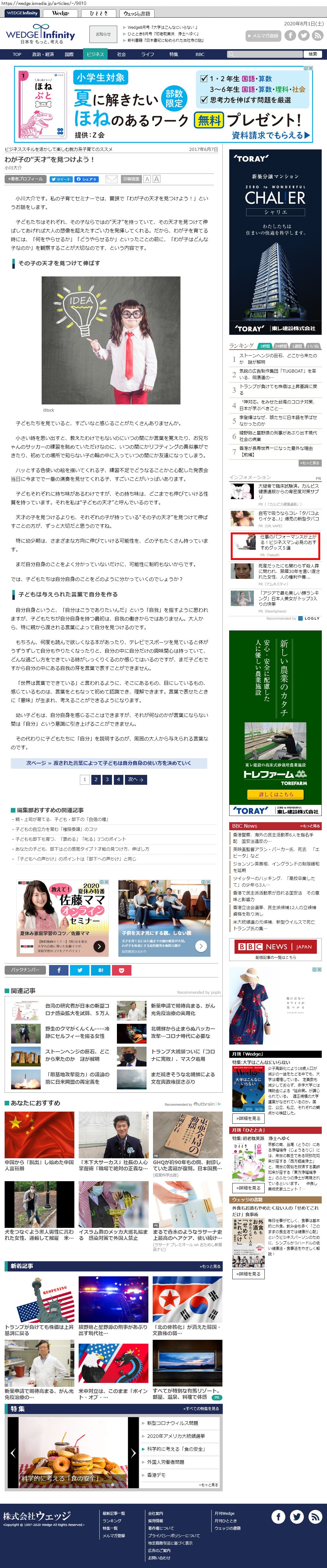 Webメディア 広告枠に赤枠付き