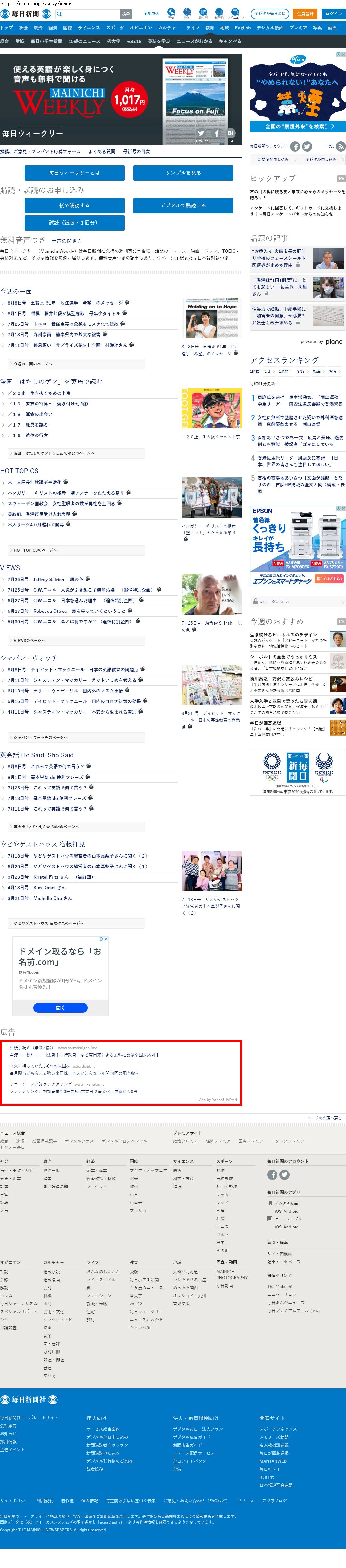 Webメディア 広告枠に赤枠付き