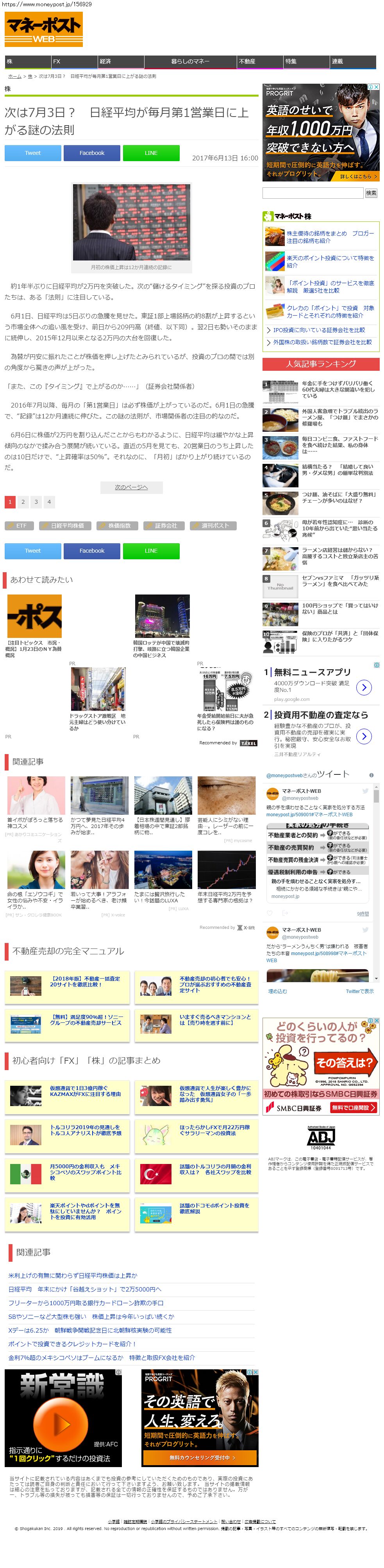 Webメディア 広告枠に赤枠付き