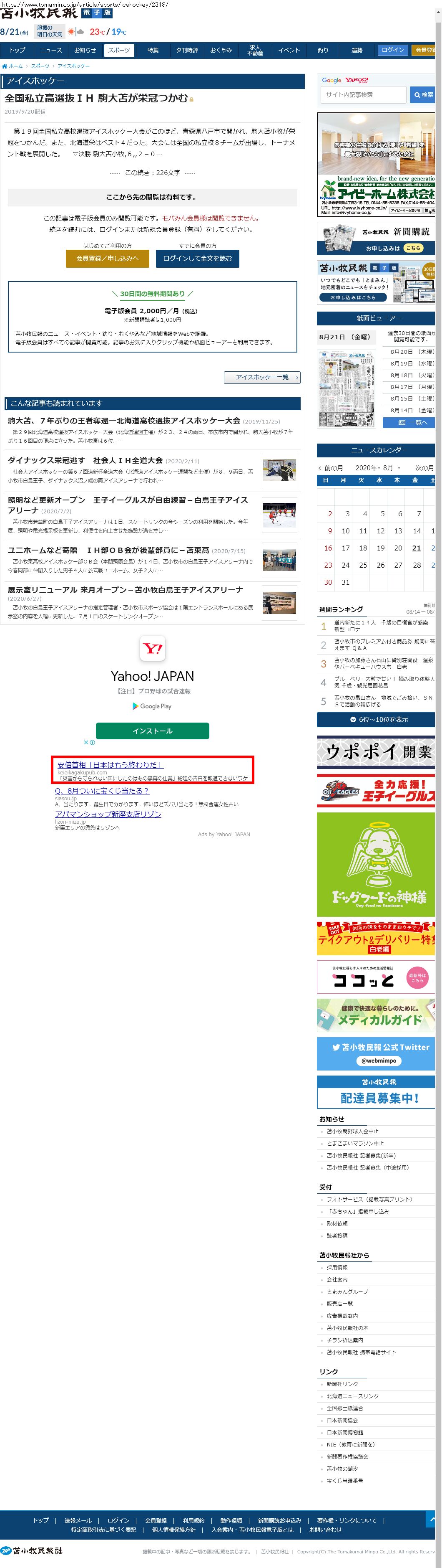 Webメディア 広告枠に赤枠付き