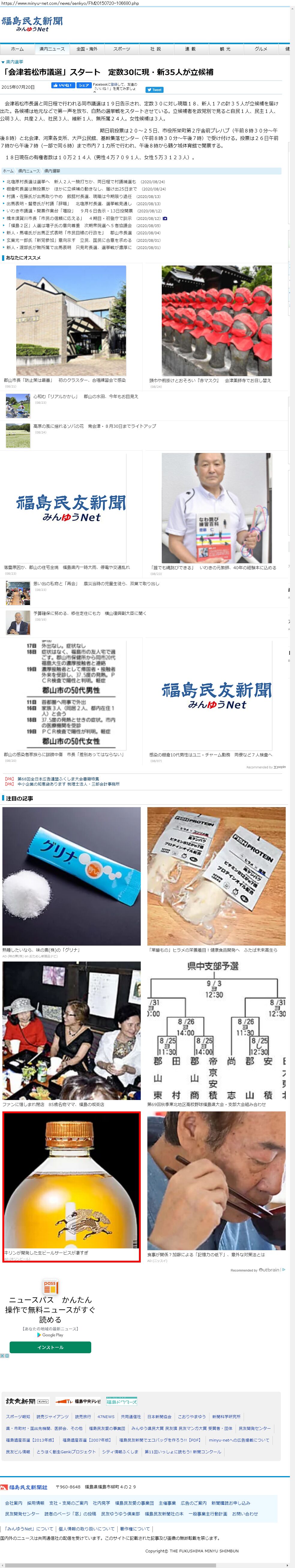 Webメディア 広告枠に赤枠付き