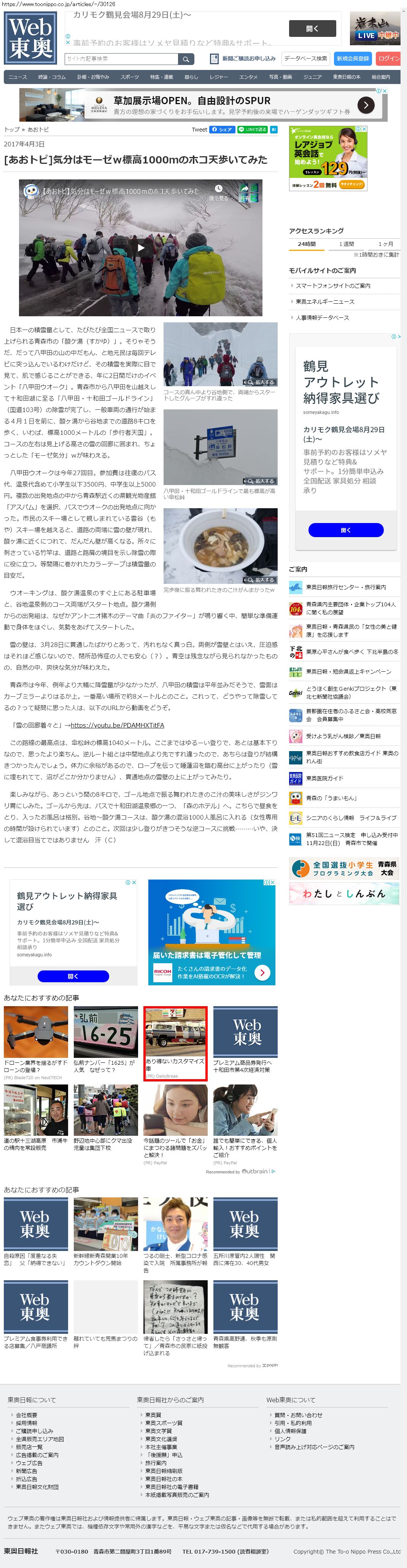 Webメディア 広告枠に赤枠付き