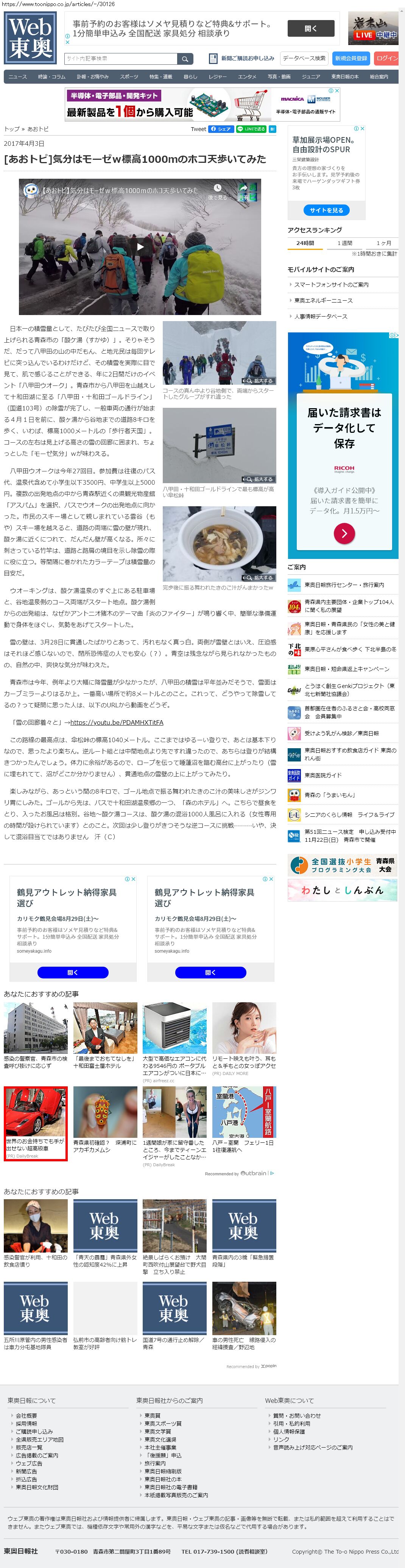 Webメディア 広告枠に赤枠付き