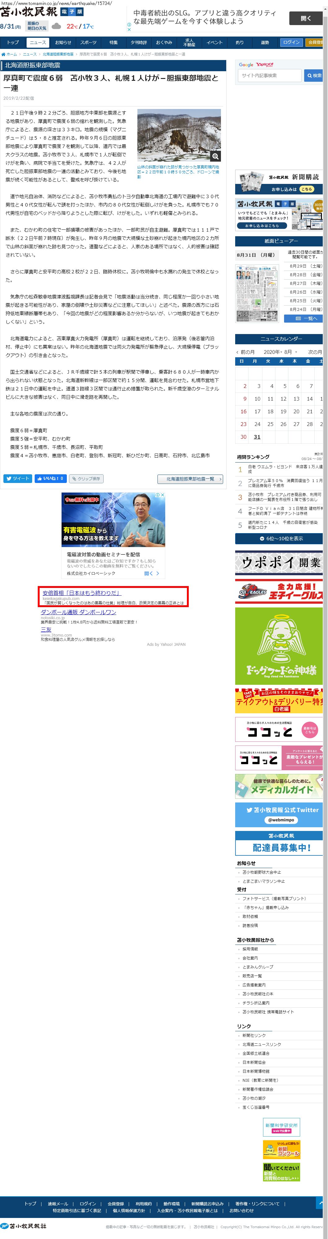 Webメディア 広告枠に赤枠付き