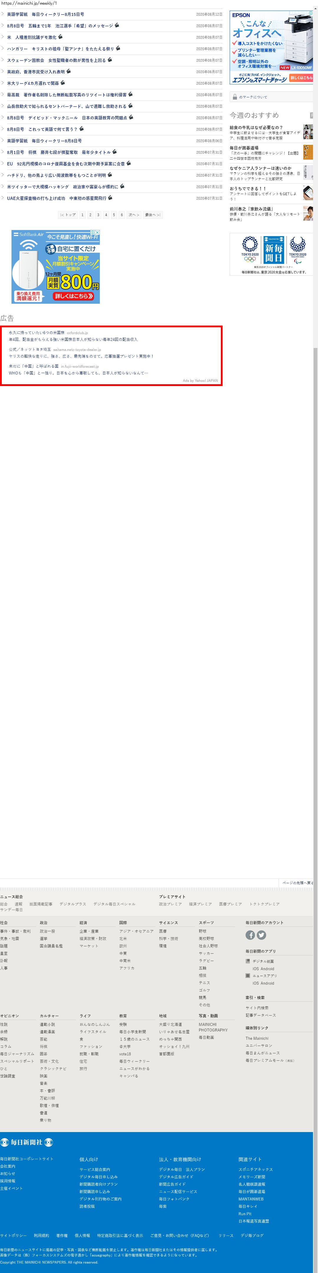 Webメディア 広告枠に赤枠付き